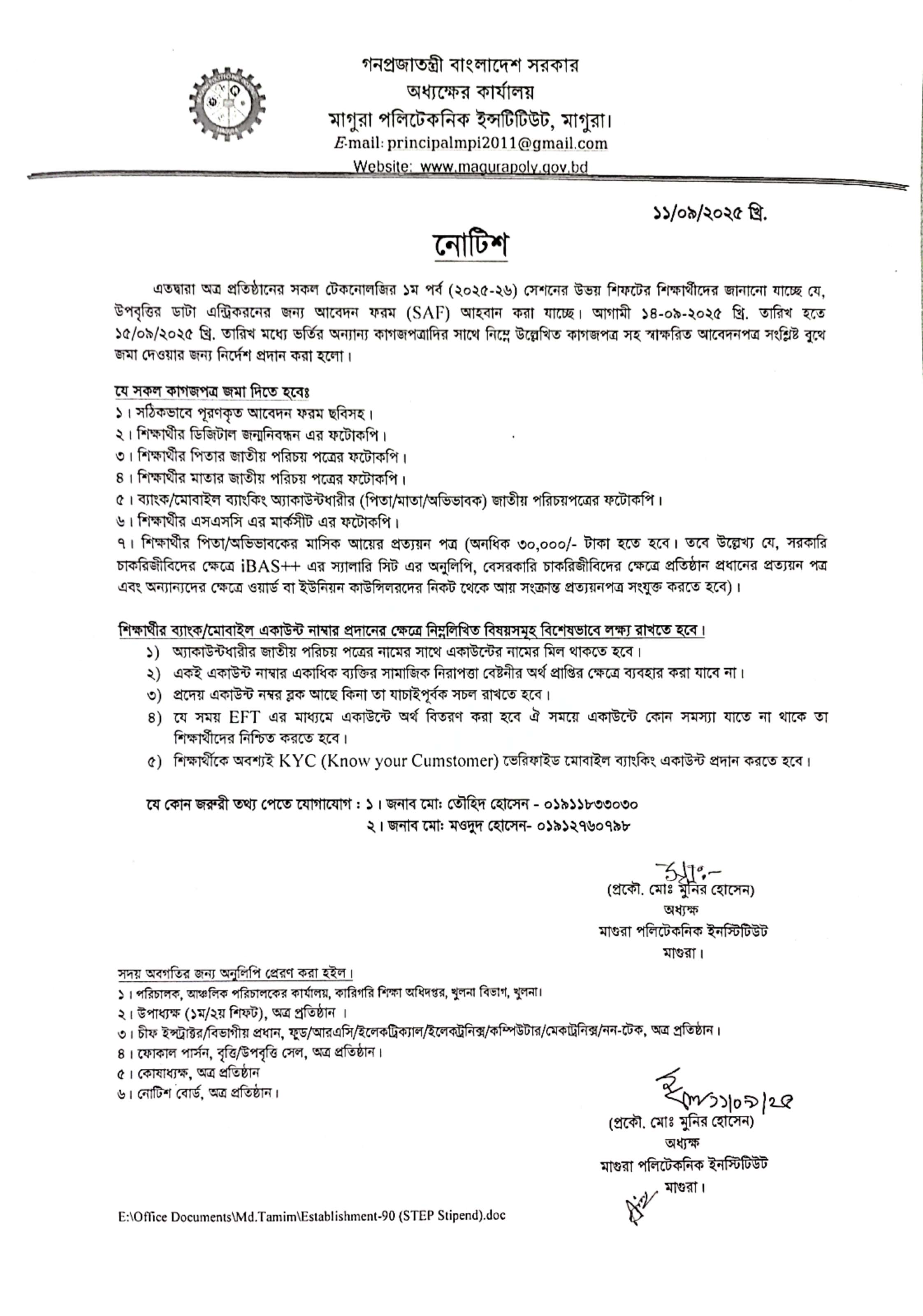 উপবৃত্তির নোটিশ (২০২৫-২৬ শিক্ষাবর্ষ)