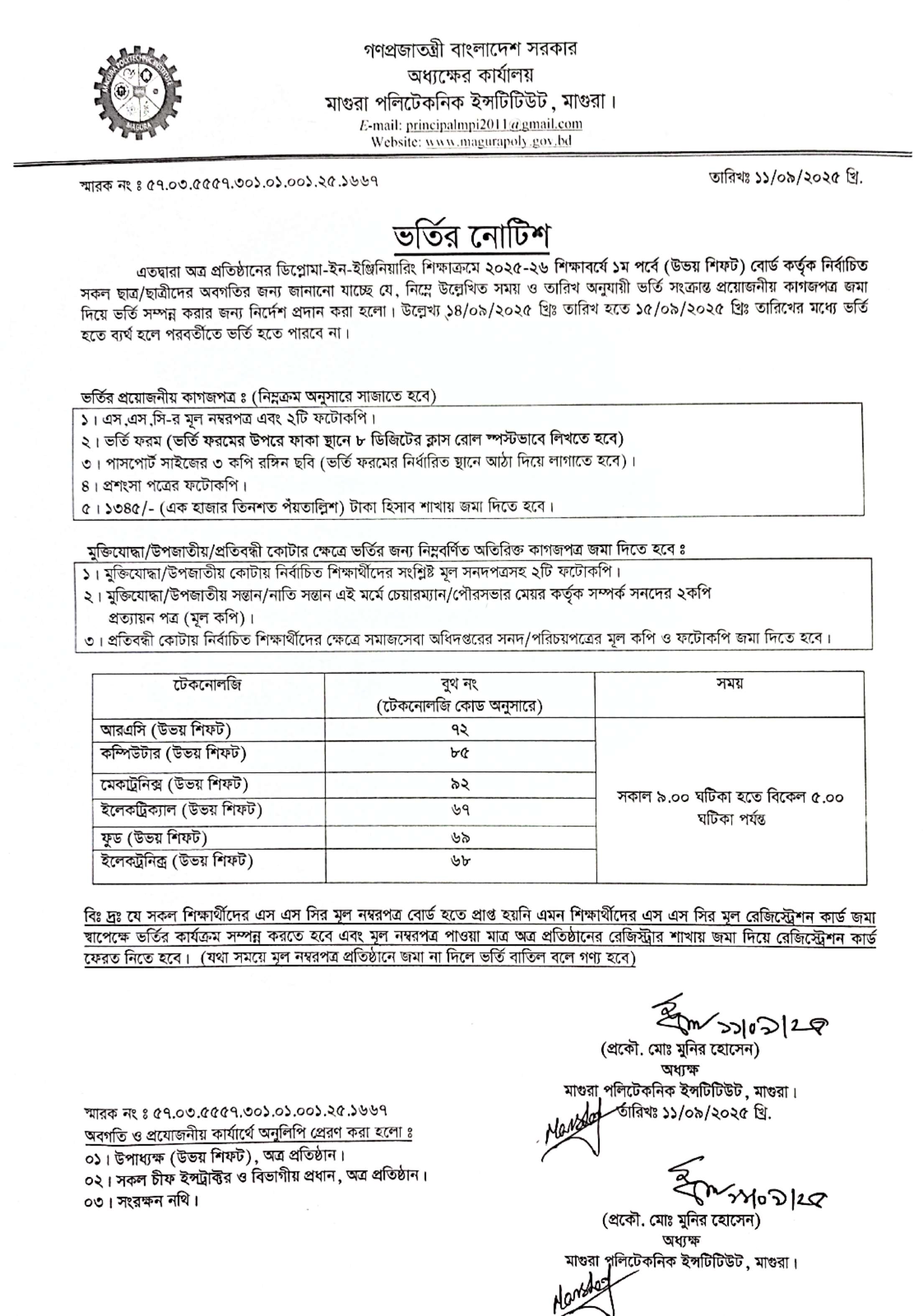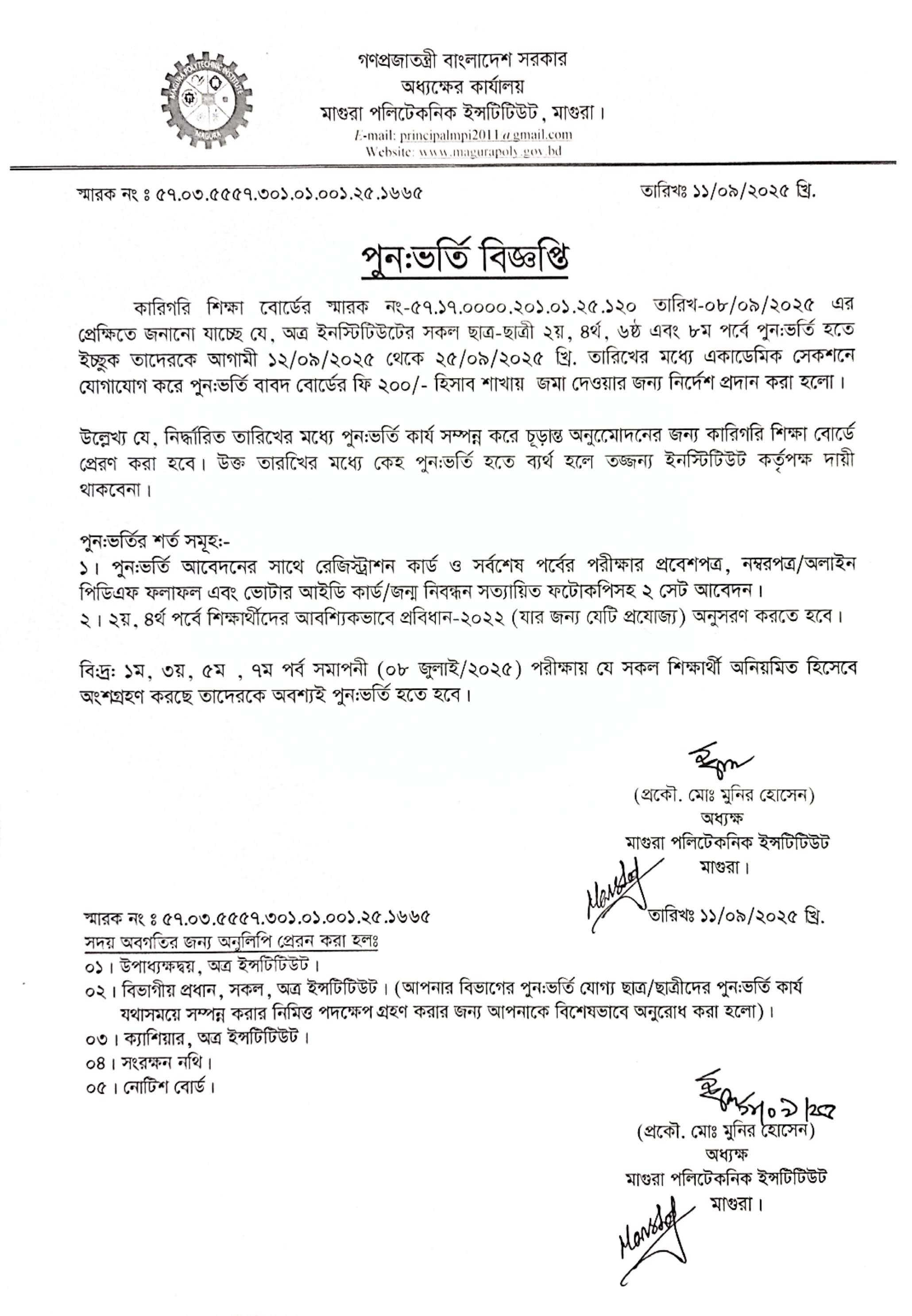 ডিপ্লোমা-ইন -ইঞ্জিনিয়ারিং ১ম বর্ষে (২০২৫-২৬ শিক্ষাবর্ষ) প্রতিষ্ঠানে ভর্তি বিজ্ঞপ্তি